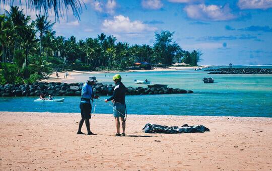 Aus der ehemaligen mobilen Basis an La Pointe ist inzwischen eine quasi feste, zweite ION CLUB Station entstanden – perfekt gelegen am letzten Zipfel des St. Regis Geländes mit direktem Zugang zum öffentlichen Strand. Von hier aus lassen sich alle drei Sportarten Kiten, Wingen und Windsurfen optimal starten. Gäste aus dem LUX Le Morne, dem RIU Palace und dem St. Regis erreichen die Station in wenigen Gehminuten; Gäste vom RIU Turquoise benötigen etwa acht Minuten zu Fuß.