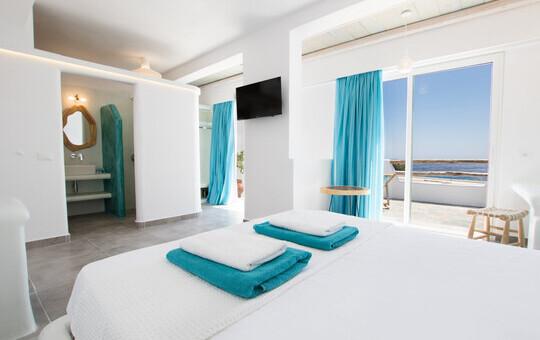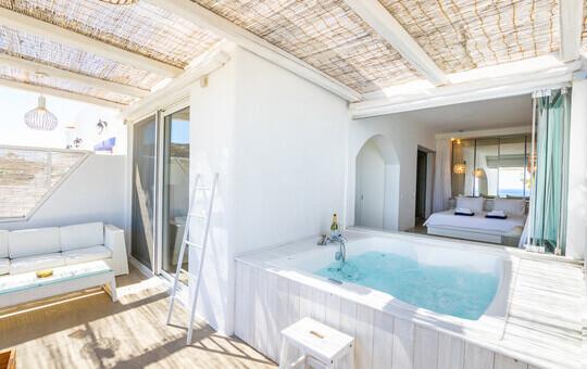 Die renovierten und großzügigen Deluxe Suiten (ca. 33qm²) sind hell und modern und sehr ansprechend eingerichtet und bieten den Gästen einen Schlafbereich mit Sitzecke. Alle DEluxe Suiten verfügen über ein Doppelbett und ein Schlafsofa, Flachbild-TV, Dusche/WC, Fön, Klimaanlage, Safe sowie Terrasse oder Balkon mit Whirlpool und Meerblick (Moskitonetz auf Wunsch erhältlich).