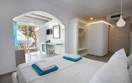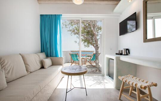 Die renovierten und großzügigen Junior Suiten (ca. 27qm²) sind hell und modern und sehr ansprechend eingerichtet und bieten den Gästen einen Schlafbereich mit Sitzecke. Alle Junior Suiten verfügen über ein Doppelbett und ein Schlafsofa, Falchbild-TV, Dusche/WC, Fön, Klimaanlage, Safe sowie Terrasse oder Balkon mit Meerblick (Moskitonetz auf Wunsch erhältlich).