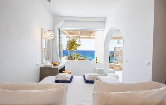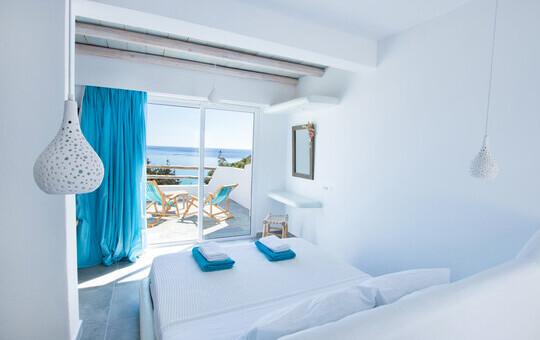 Das familiengeführte moderne Hotel mit top Hotel-Restaurant im inseltypischen Stil bietet einen tollen Blick auf die kleine Badebucht mit kristallklarem Wasser.