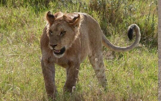 Am Nachmittag folgt eine Pirschfahrt im offenen Jeep durch weitere Gebiete des Parks – mit guten Chancen auf Sichtungen von Großkatzen, Giraffen, Zebras und Antilopen. Rückkehr zum Camp bei Sonnenuntergang, gefolgt von einem Abendessen unter freiem Himmel.