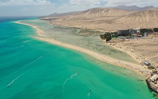 Der Süden von Fuerteventura bietet einen 5km langen, feinsandigen Strandabschnitt, dessen Küstenabschnitt Sotavento unter Naturschutz steht. Ein sehr breiter Sandstrand, keine Riffe und höchste Sicherheit sind das Markenzeichen dieses Reviers. Größtenteils herrschen Flachwasserbedingungen, ansonsten ein leichter bis mittlerer Shorebreak mit Wellen bis 1,5m Höhe. Ein absolutes Highlight des Spots ist die nahezu abgeschlossene, gezeitenabhängig gefüllte, große stehtiefe Lagune. Hier kann der Kursschüler wie auch Mietgast, im stehtiefen Wasser sein Level verbessern. Die Windsurfer und Wingfoiler sowie Kiter haben separate, großzügige Zonen, die durch Bojen gekennzeichnet sind. Der weitläufige Strand bietet komfortablen Platz und große Sicherheit. Für Kiter gibt es einen abgeteilten Bereich für Start und Landung der Kites. Der Wind ist meist schräg ablandig (Ø 4-5 Beaufort bzw. 11-16 Knoten), aber ein ausgeklügeltes Rescuesystem sorgt für höchste Sicherheit. Während der Öffnungszeiten beobachtet ein Wachposten vom Tower direkt an der Wasserkante das Geschehen auf dem Wasser und informiert per Funk einen bereitstehenden Rescue-Fahrer, der mit dem Jetski sofort zu Hilfe eilt. Somit sind perfekte Wingfoil-, Windsurf- und Kitetage am Strand von Sotavento auf Fuerteventura vorprogrammiert.
