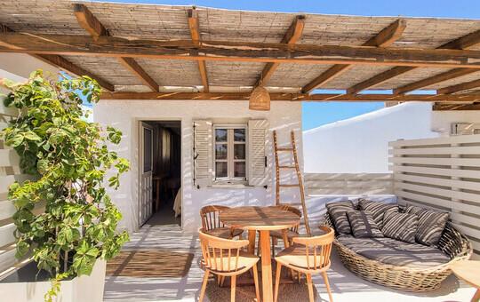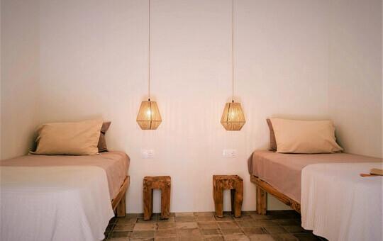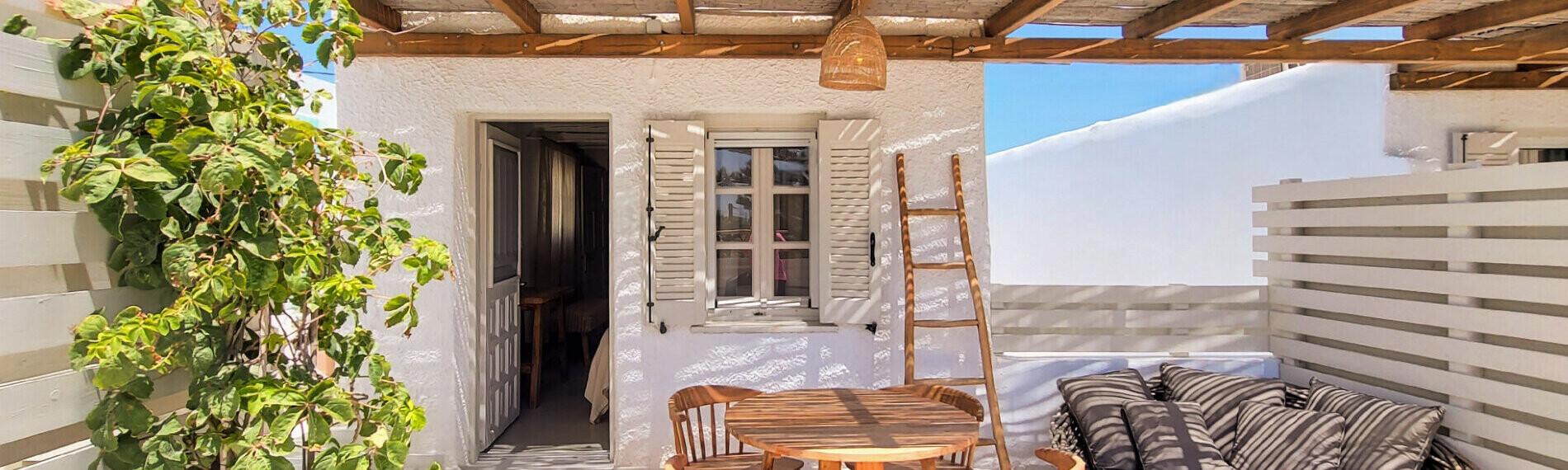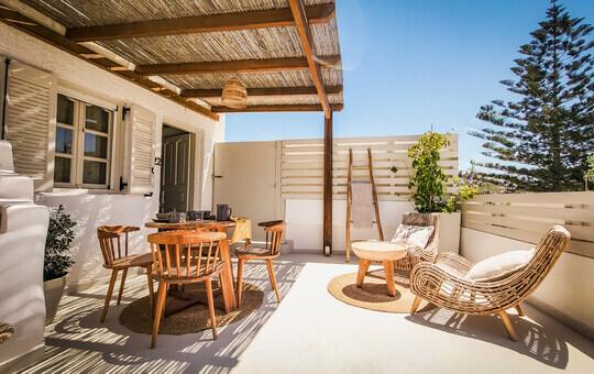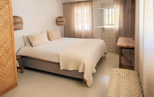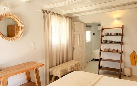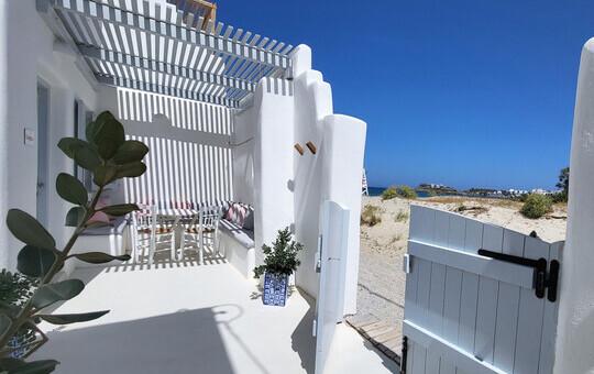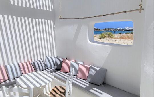Das Flisvos Farmhouse liegt neben dem Naxos Beach Hotel, etwa 150m vom Meer entfernt. Das Farmhouse ist in einem modern mediterranen Landhausstil mit viel Holz eingerichtet. Das Ferienhaus verfügt über eine Küche (u.a. mit Nespresso Maschine und Milchschäumer ausgestattet), und drei Schlafzimmer, eines mit Kingsize Bett und zwei mit Einzelbetten. Zwei der Zimmer sind verbunden und das 3. Zimmer hat einen separaten Eingang über die Terrasse. Auch das Badezimmer mit Dusche/WC und die separate Toilette sind über die Terrasse zu erreichen. Zusätzlich gibt es eine Außendusche mit Warmwasser und ein Außen-Handwaschbecken. Das Farmhouse hat ein eigenes Wlan