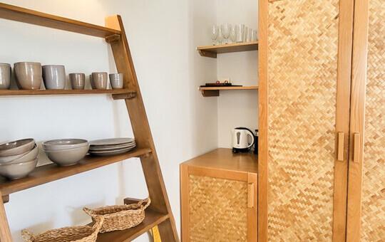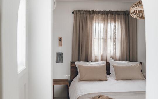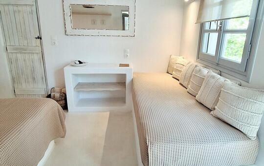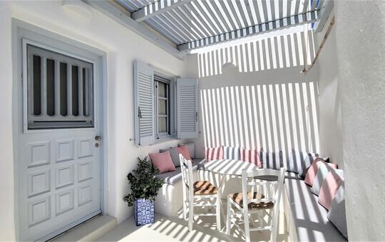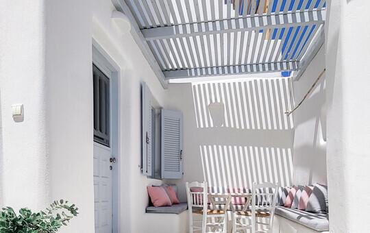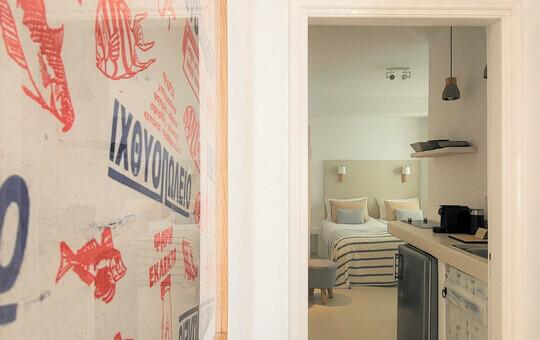 Das Kaikias Appartement besteht aus zwei Doppelzimmern mit Verbindungstür und jeweils eigenem Bad (inkl. Regendusche, WC und Föhn). Zur Ausstattung gehören Klimaanlage, eine Küchenzeile mit Nespresso-Maschine und Milchschäumer, Flachbildfernseher, Safe sowie hochwertige Komfortmatratzen. Die Unterkunft befindet sich im Erdgeschoss eines Innenhofs mit gemeinschaftlich genutzten Terrassenbereich.