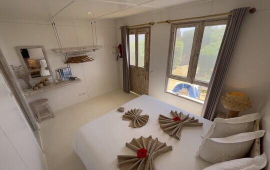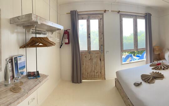 Als Low Budget Variante gibt es etwas kleinere Bungalows (ca. 12qm), die sogenannten Young Blood Bungalows. Diese Bungalows sind ebenfalls aus Holz, haben ein eigenes Bad und eine Terrasse mit Garten und Blick zur Lagune.