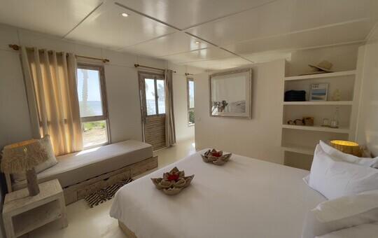 Die schöne Eco-Lodge (ehem. Ocean Vagabond) mit Hotel-Service liegt am Fuße einer großen Düne mit überraschend viel Grün! Im Haupthaus der Bungalowanlage befindet sich das Restaurant, eine Bar und ein Loungebereich. Eine Beach-Bar mit tollem Lagunenblick und eine Zen-Cabana mit Massagen und Yoga runden das Angebot für die Gäste ab. Die Anlage ist stilvoll, sauber und gepflegt und bietet auch für Kinder einen Außen-Spielbereich. Das Lagon Energy ist sehr vorbildlich in Sachen Umweltverträglichkeit und passt sich in der Bauweise perfekt an die Umgebung an. Die Bungalows sind aus „recyceltem“ Holz errichtet, haben ein Solarpanel für die Energieversorgung auf dem Dach sowie einen Tank zur Warmwasserzubereitung. Das Frischwasser kommt aus einem 5km entfernten Brunnen. Das Abwasser läuft durch eine Wasserwiederaufbereitungsanlage und wird im Anschluss als Nutzwasser z.B. zur Bewässerung verwendet. Die LED Beleuchtung im gesamten Bereich reduziert den Energieverbrauch.