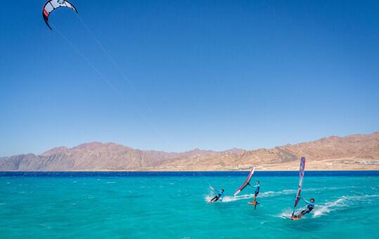 In bestimmten Bereichen der Dahab Bucht (bspw. kleine Lagune am Nordende der Bucht) darf auch gekitet werden.