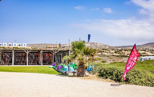 Das Meltemi Windsurfing Center befindet sich direkt am Wasser in der Lagune/Chicken Bay und ist ideal für Anfänger, Fami...
