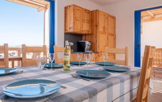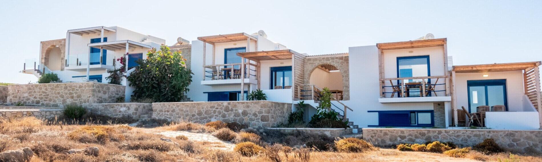 Die Villen, unter der Leitung von Meltemi Windsurfing, befinden sich direkt neben der Meltemi-Hauptstation in der Devil's Bay. Diese einzigartige Lage bietet einen atemberaubenden Blick auf die Bucht sowie einen bequemen Zugang zu den Angeboten der Meltemi Windsurfing Station. Verschiedene Zusatzleistungen stehen zur Verfügung, darunter Frühstück in der Meltemi Bar sowie spezielle Angebote zur Fahrradvermietung.
