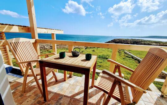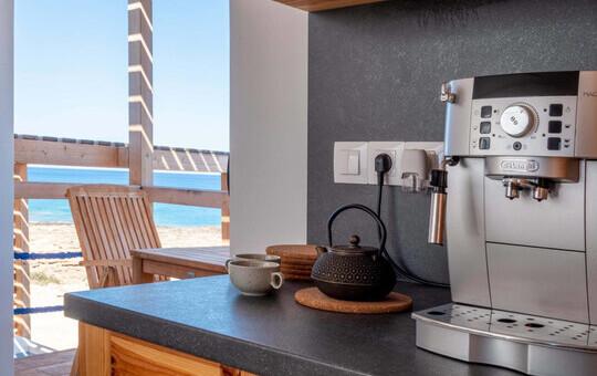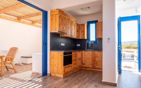 Moderne Ferienhäuser direkt an der Devils Bay, nur wenige Schritte zum Meltemi Windsurfing Center.
