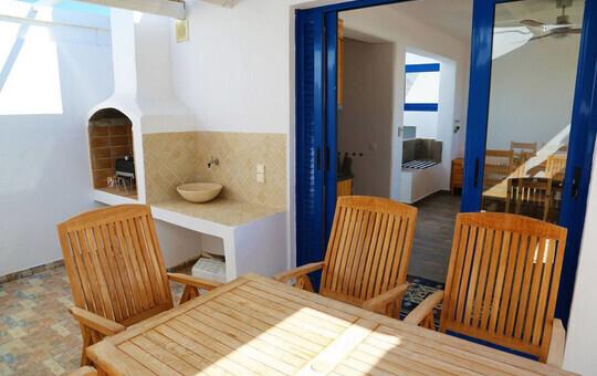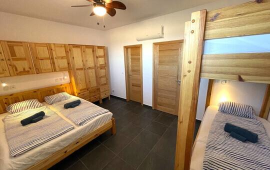 Die Villa umfasst drei Schlafzimmer mit jeweils eigenem Badezimmer, einen Wohnbereich mit voll ausgestatteter Küche und eine Terrasse mit Grillmöglichkeit und bietet Platz für bis zu 7 Personen.