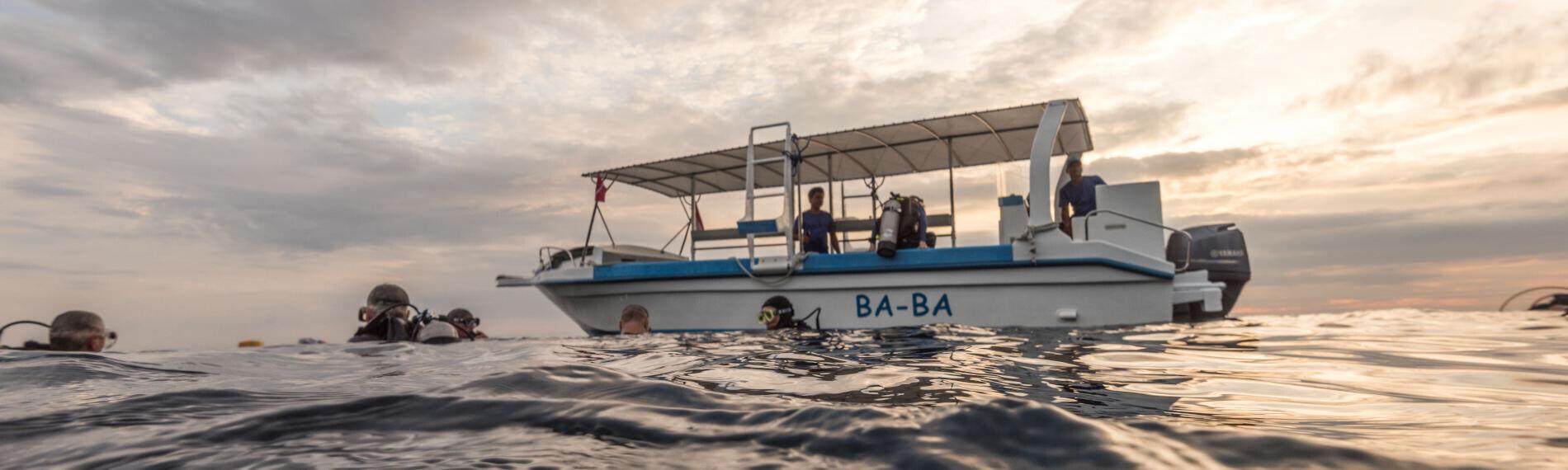 Täglich werden zwei Tauchgänge, und Nachttauchgänge bei Bedarf, mit dem 10 Meter langen Tauchboot oder mit den drei Kleinbussen zu den umliegenden Tauchplätzen angeboten (Fahrzeiten zwischen 3 und 60 Minuten). Werden die Tauchplätze im Nordwesten (Menjangan, Secret Bay) oder Südosten (Nusa Penida, Nusa Lembongan) der Insel angefahren, beträgt die Fahrzeit zwischen 1,5 und drei Stunden. Diese Ausfahrten werden in der Regel als Tagesausflüge mit zwei Tauchgängen durchgeführt und zwischen den Tauchgängen werden Sandwiches, frisches Obst, Trinkwasser und Softdrinks (im Tauchpaketpreis enthalten) serviert. Sowohl auf dem Schiff, als auch in den Bussen, sind Sauerstoff, erste Hilfe Ausrüstung und ein Handy vorhanden. Ein Taucharzt und eine Dekokammer befinden sich in Denpasar.