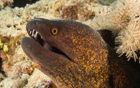 einsame Tauchplätze mit Chance auf Großfisch, Fury Shoals und farbenprächtige Korallenformationen sowie Höhlen und Überhänge