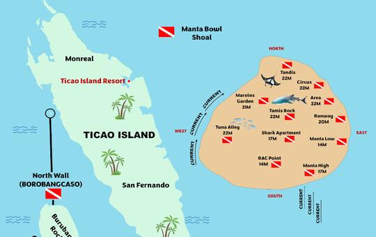 "Ticao ist DER Platz für Mantasichtungen auf den Philippinen und das ganzjährig. Etwas Erfahrung sollte man für den Spot Manta Bowl allerdings mitbringen, denn der Platz ist etwas tiefer und weist meist Strömung auf. Wer eher Makro und schöne Riffe voller Weichkorallen sucht, der kommt im Norden Ticaos auf seine Kosten. Das charmante Ticao Island Resort mit nur elf Zimmern in Beachfront Bungalows ist eine kleine, sehr gepflegte naturnahe Oase - eher einfach, aber doch ausreichend komfortabel, traumhaft gelegen und weit weg von jeglichem Massentourismus. Sehr reizvoll sind auch die Kombimöglichkeiten mit einer Besichtigung des eindrucksvollen Vulkans Mayon (Quadtouren) und dem Walhai-Schnorchelspot Donsol."