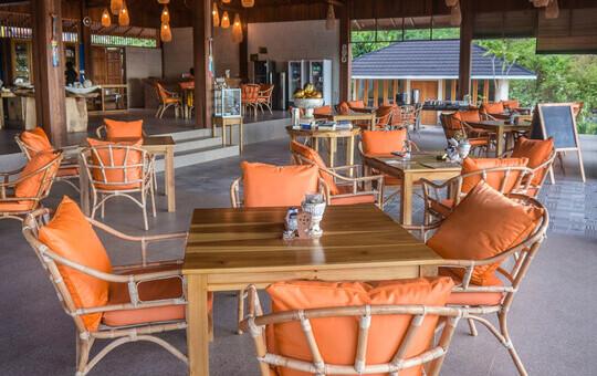 Zur Anlage gehören neben der Tauchbasis ein Restaurant, ein kleiner Swimmingpool und eine Bar, von der aus man den Sonnenuntergang genießen kann.