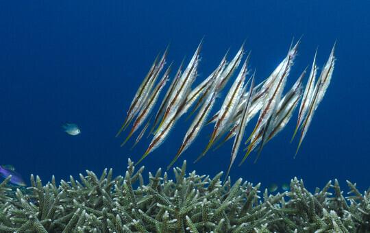 Großfischbegegnungen sind vor allem in den Pässen häufig, typisch sind Schildkröten, Mantas, große Zackenbarsche, und ab und an auch Haie (aber eher seltener ). Besonders erwähnenswert ist auch die häufige Sichtung von Walhaien in der Bucht von Chole.